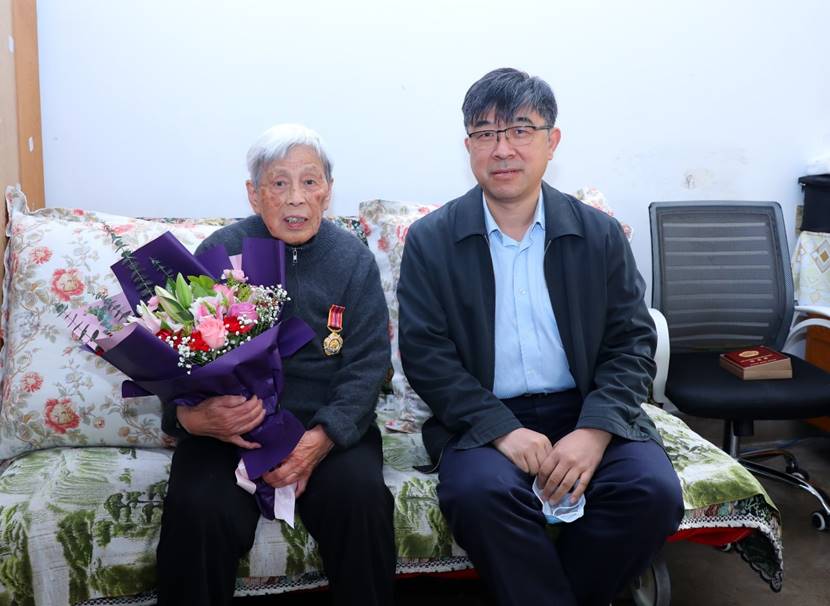 10月20日上午,副校长彭刚看望了老战士、离休教师安洪溪。安洪溪回忆和讲述了自己先后参加解放战争、抗美援朝战争,以及复员后在beat365官方唯一入口工作的历程,感谢党和学校一直以来对他无微不至的关心和照顾。彭刚为安洪溪佩戴了“中国人民志愿军抗美援朝出国作战70周年”纪念章,对安洪溪为党和革命事业以及学校建设发展作出的贡献表示敬意和感谢,并祝愿他健康长寿。