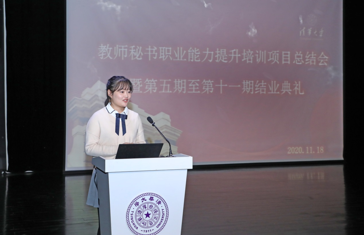 第七期学员、医学院张欣然发言谈到,教师秘书培训的目的不仅仅是将知识的水灌满,而更在于将自主学习与进步的火点燃。第一轮教师秘书培训班的课程虽然已全面结束,但教师秘书的学习实践与成果转化却才是开始。