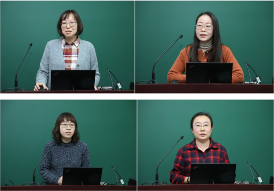 小组组长作学习报告(从左至右,从上至下依次为:鲁杰、彭安祺、韩峰、刘丽英)
