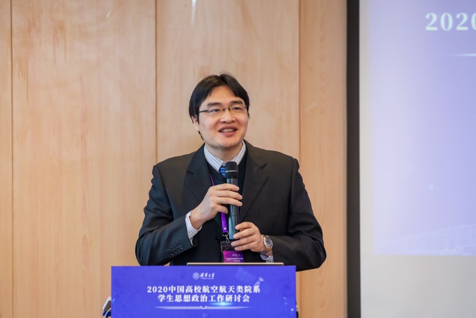 西安交通大学航天航空学院党委副书记陈永华以“三维视角下空天类研究生思想政治教育工作的思考”为题,指出我们要面向国家重大需求,培养学生家国情怀,实施精准思政,通过分析把握当前学生时代特点,将思政教育与专业教育紧密结合。