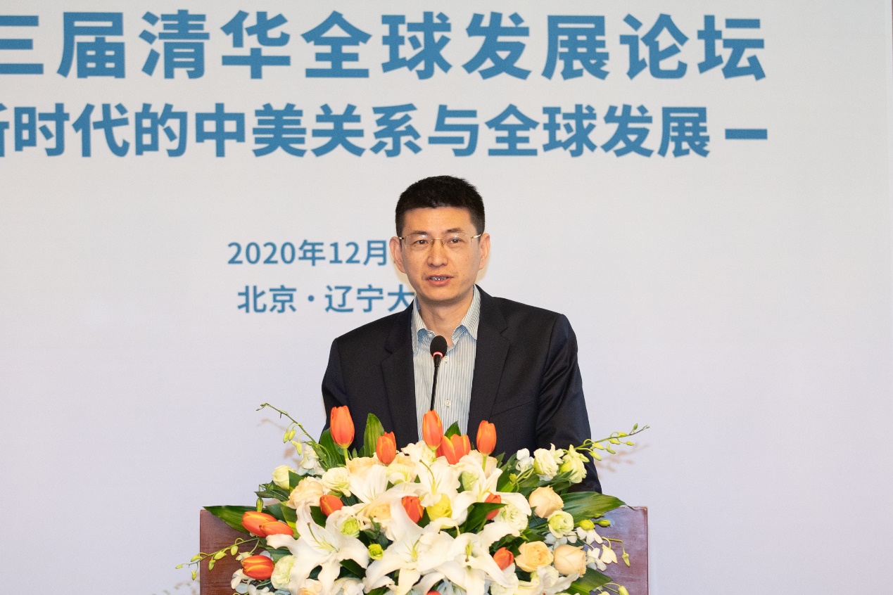 当代中国与世界研究院高级研究员、中国外文局原局长、中国翻译协会会长周明伟致辞。他指出,面临百年未有之大变局,研究中美关系发展走向具有重要意义,而智库在其中的作用不可或缺。清华应继续发挥自身在国别研究等方面的优势。