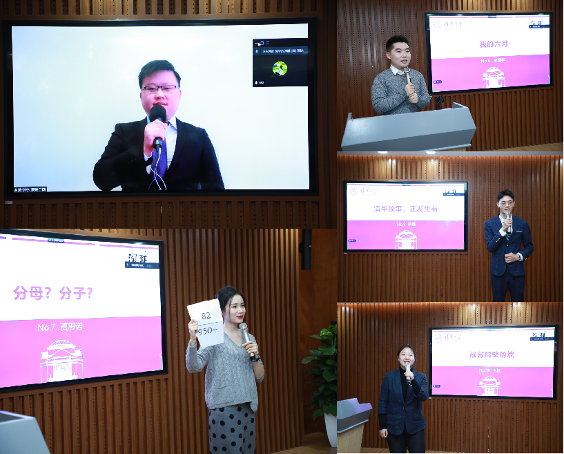 孙翔宇从校门值班、接送学生、集中新冠检测过程中的抗疫故事入手,展现了疫情期间清华师生团结一心、坚强抗疫的精神。贾思诺分享了自己转变身份,踏实做分母,不断接受来自组织的考验,从小事做起的工作经历。徐前鹏从深耕计划党支部的视角,带大家回顾了学校如何在一天半时间内完成集中核酸检测的故事。李豪作题为“清华故事,正发生着”的演讲,让大家意识到清华的故事是由每一个清华人所谱写。“我们被隔开在彼此不可见的单间里,但仍然可以去敲隔壁的墙”,毛悦讲述了疫情期间自己与朋友互相安慰和陪伴的故事。
