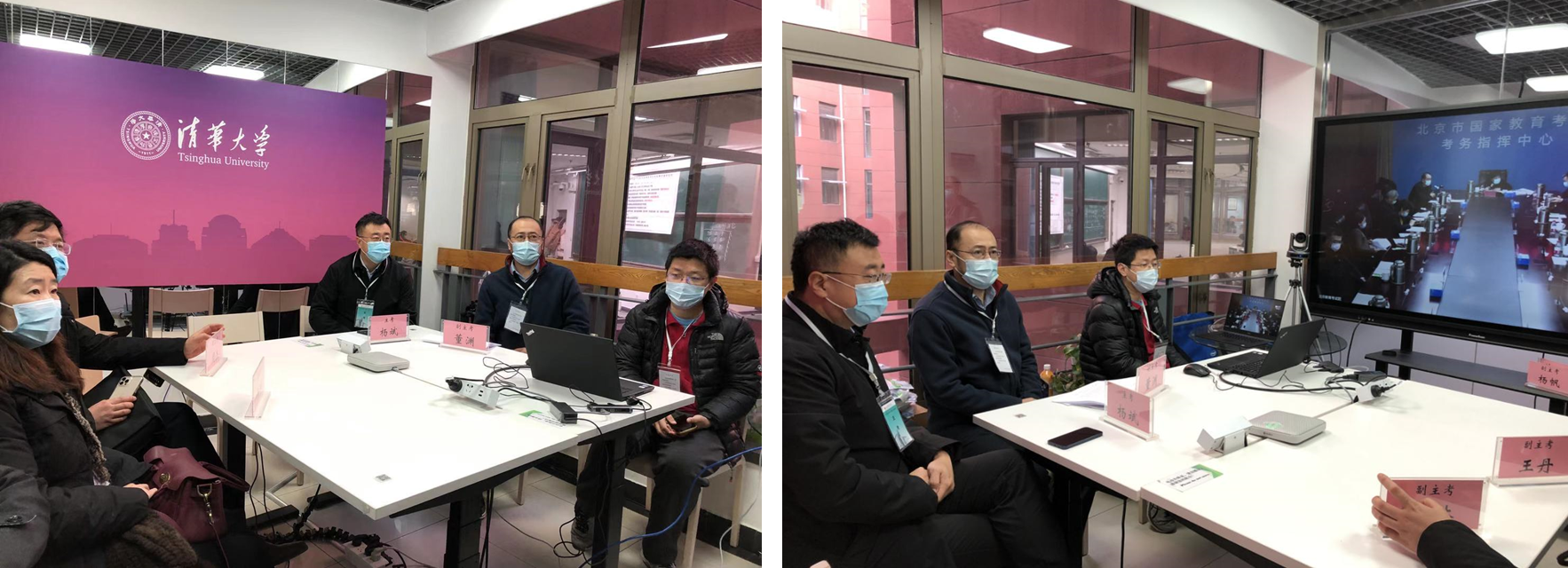 杨斌等在清华考点指挥中心值守并与北京市教育考试院现场连线