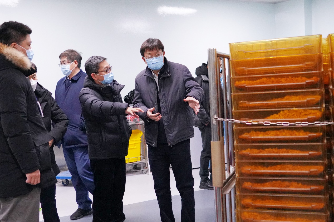 检查组查看了中心的自动化隧道洗笼机、脏垫料负压处理系统以及体外受精及精子/胚胎冷冻实验室等区域。李一兵向中心工作人员进行亲切慰问,询问了工作人员招聘、福利、工作强度及离职率等有关情况,希望中心全体人员继续努力,扎实做好防疫工作,保障科研支撑服务,确保假期工作有序进行,安全度过假期。
