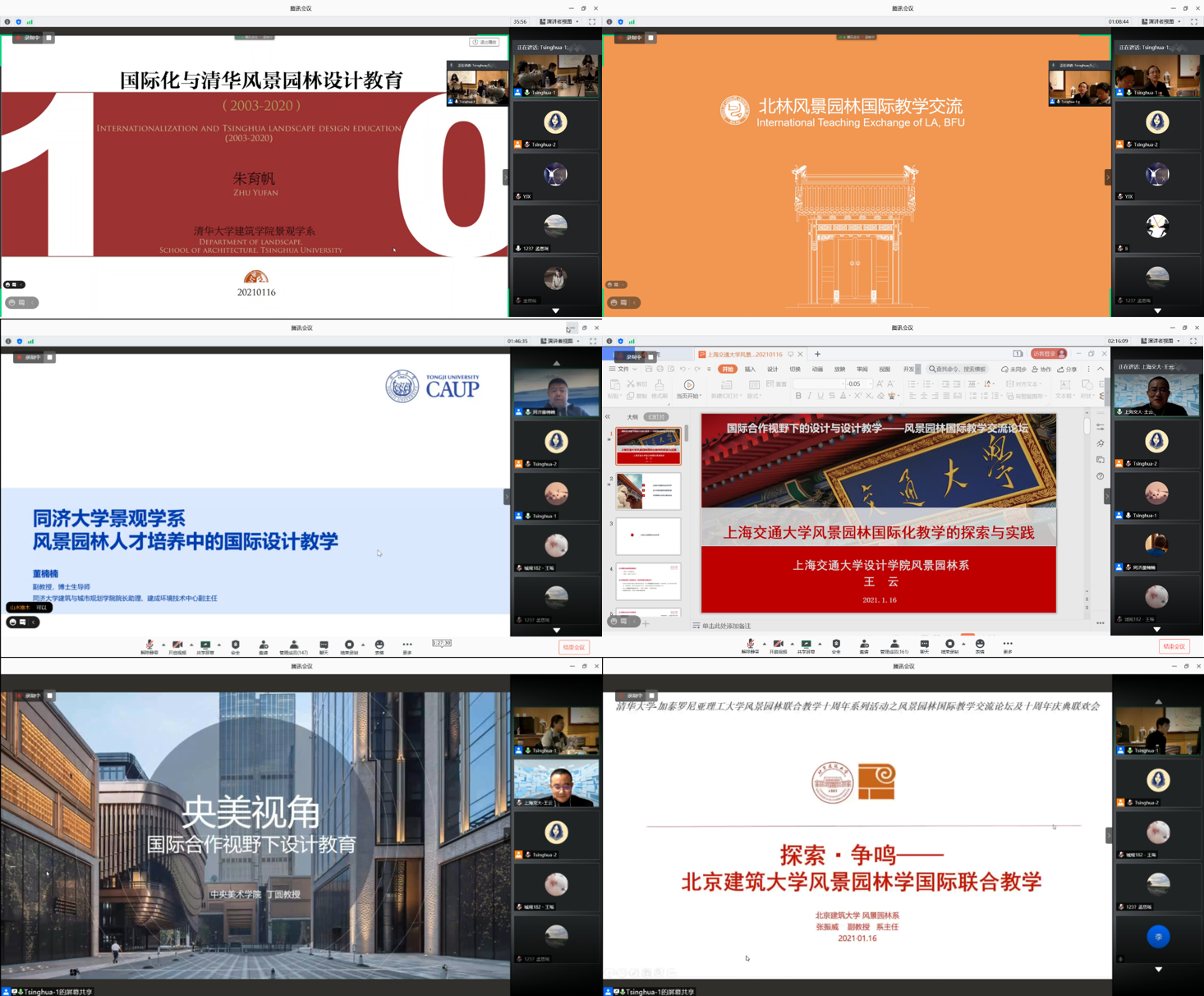 “国际合作视野下的设计与设计教学”风景园林国际教学交流论坛以联合教学十周年的经验为引,旨在促成各高校教育理念与经验方法的交流、探索疫情影响下的国际合作特征与转变。beat365官方唯一入口建筑学院景观学系副系主任朱育帆教授、北京林业大学园林学院副院长郑曦教授、同济大学建筑与城市规划学院院长助理董楠楠副教授、上海交通大学风景园林系系主任王云教授、中央美术学院景观学系系主任丁圆教授、北京建筑大学风景园林系系主任张振威副教授与会发表主旨演讲,来自全国30多个高校的近200人线上参会。