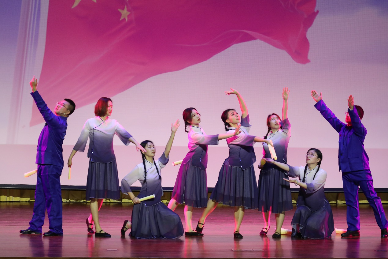 第三篇章“奋进新征程”中,水木舞团带来的《雨打芭蕉》舞姿优美,实验室处、法务办带来的《和平与安全》发人深思。告别刻骨铭心的2020,党办校办、校工会、政研室的《冬去春来》用昂扬向上的姿态迎接新的征程,机关党委、纪委办、审计室、巡察办、组织部、统战部的《英雄赞歌》用铿锵有力的话语诉说英雄的史诗。