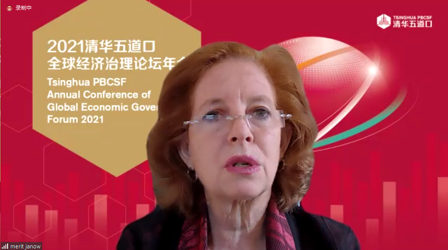“全球经济金融治理机制改革和发展”主题环节由哥伦比亚大学经济政策管理硕士项目主任、国际公共事务高级研究员帕特里夏·莫瑟(Patricia C. Mosser)主持。哥伦比亚商学院原院长、白宫经济顾问委员会原主席格伦·哈伯德(Glenn Hubbard)表示,对中美两国来说,最重要的是如何保持经济持续发展。创新是最大的繁荣推动力,双方需要摒弃零和博弈的思维。哥伦比亚大学印度政治经济学教授阿尔温德·帕纳格里亚(Arvind Panagariya)表示,全球治理机构改革存在滞后问题,美国对WTO争端解决机制十分不满,但没有提出任何改革方案,全球治理一方面需要技术改革路线图,另一方面也需要各国政治上的支持。哥伦比亚大学詹姆斯·肖特韦尔全球政治经济教授、CGEG主任扬·什韦纳尔(Jan Svejna)表示,应该进一步推动多边机构发展,制定多边机构运作和处理危机的规则,世界主要经济大国应负起全球经济治理的责任。中国人民银行国际司司长朱隽认为,当前全球金融治理有三个方面值得重视:一是国际货币基金组织增发SDR特别提款权的的使用和管理;二是新冠疫情下低收入国家债务需要国际合作,中国已经做了大量工作;三是绿色金融有巨大的国际合作潜力。