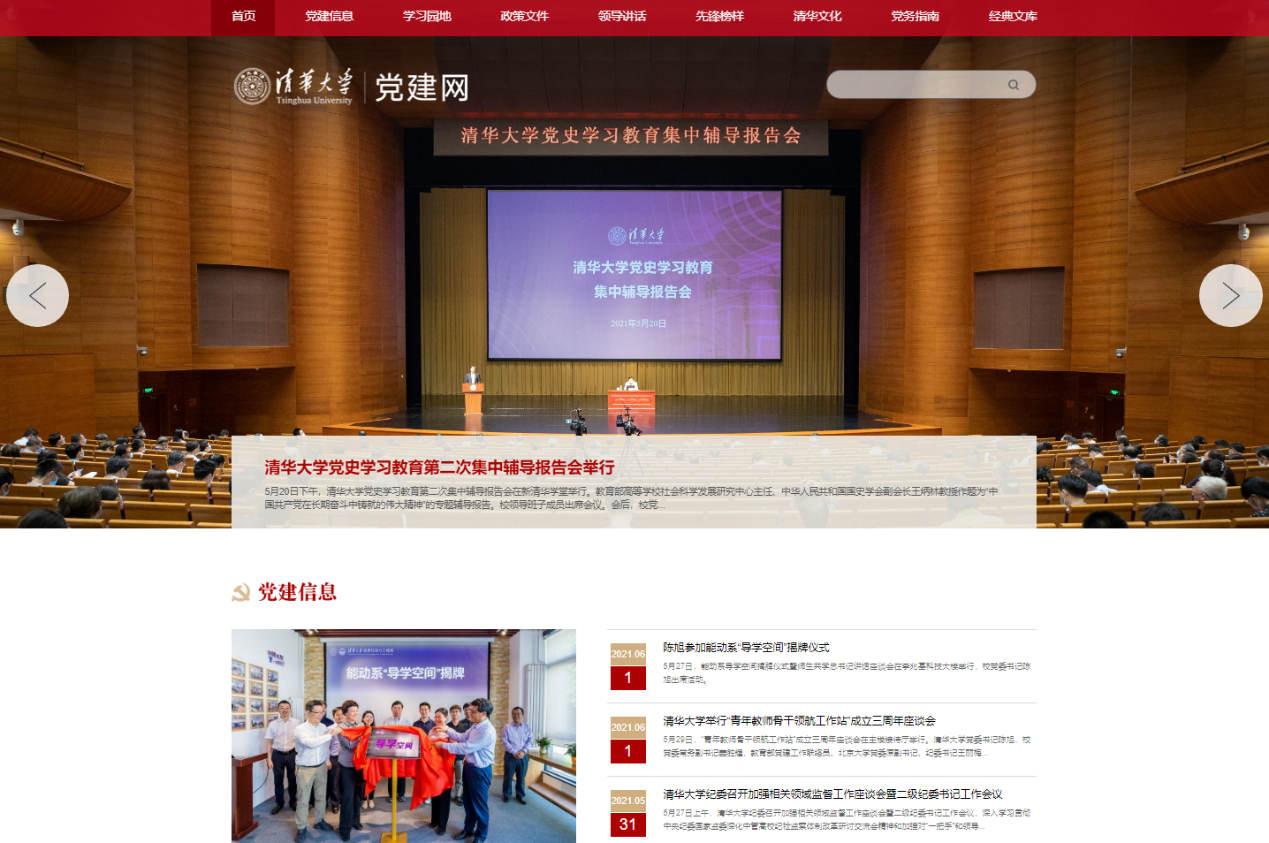 清华新闻网6月3日电(记者 郭玮翰)为深入学习宣传贯彻习近平新时代中国特色社会主义思想,庆祝中国共产党成立100周年,扎实推进党史学习教育,积极宣传中央及上级部门重要精神和部署要求,及时报道学校党建工作信息和师生反响体会,为各级党组织和广大师生提供更为及时和丰富的学习资源,6月1日,由学校党委主办的beat365官方唯一入口党建网新版网页正式上线。