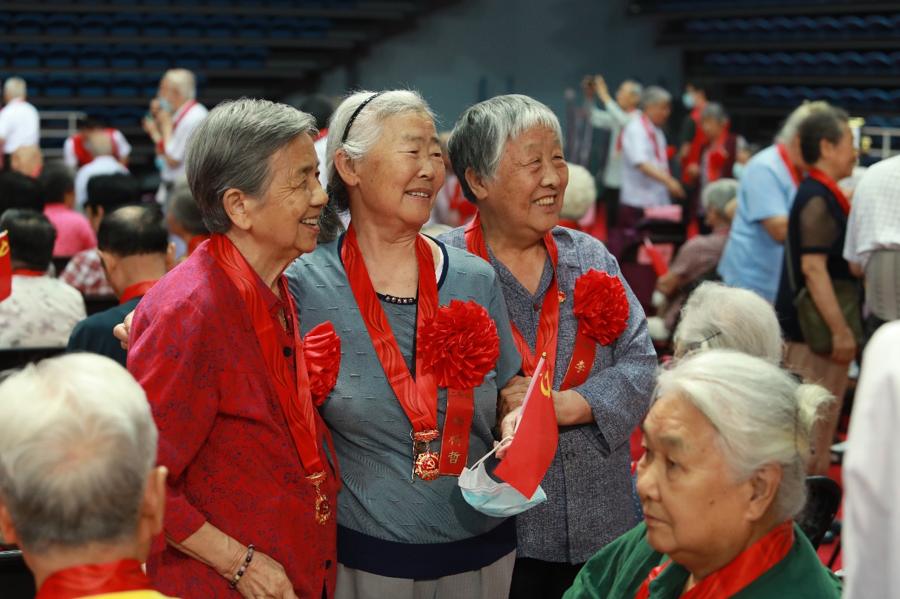 光荣授章、重温入党誓词、齐声高唱《没有共产党就没有新中国》……纪念章颁发仪式庄重而简朴。