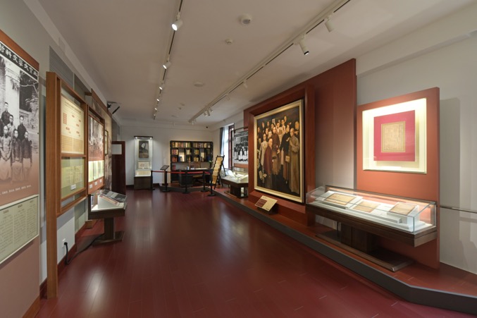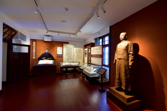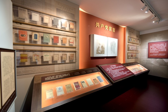 《共产党宣言》专题展厅,展出《共产党宣言》的书籍造型、实物及文字版。