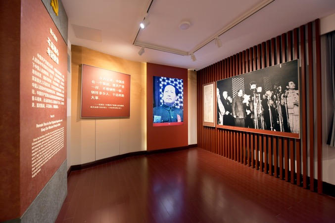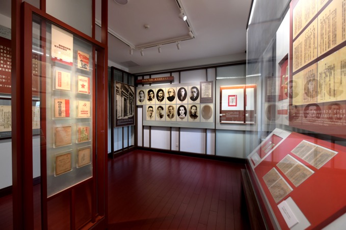 采用落地式灯箱照片、文字版等形式,展示新民主主义革命、社会主义革命和建设时期关于中国共产党成立的相关活动。