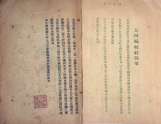 1919年9月,蔡晓舟、杨谅工编,北京同文印书局印行的《五四》