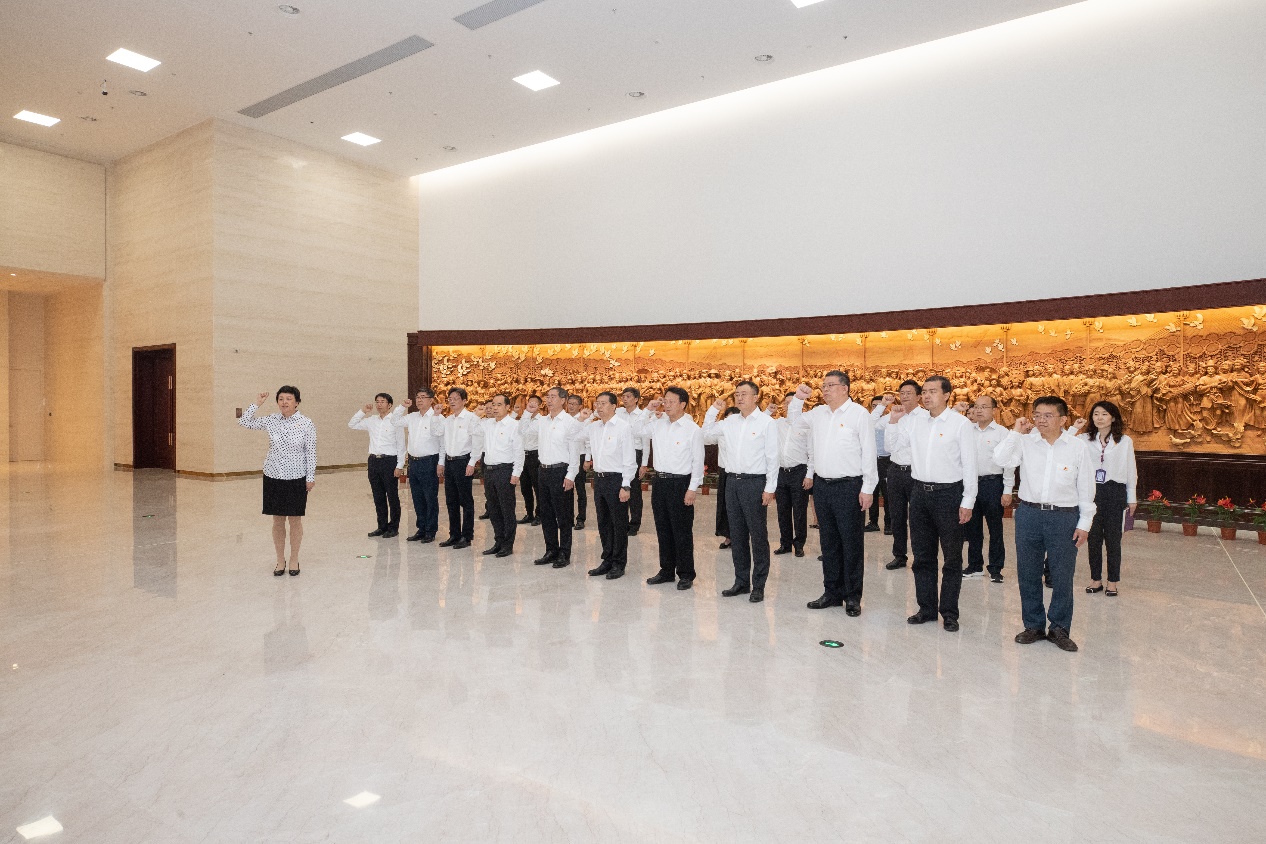 在鲜红的党旗前,校党委书记陈旭带领中心组成员共同重温了入党誓词。“我志愿加入中国共产党,拥护党的纲领,遵守党的章程,履行党员义务,执行党的决定……”铮铮誓言掷地有声,拳拳初心赤忱依旧。一句句铿锵有力的话语在大厅里久久回响,激荡着每个人火热的赤子之心,也汇聚起砥砺前行的精神力量。
