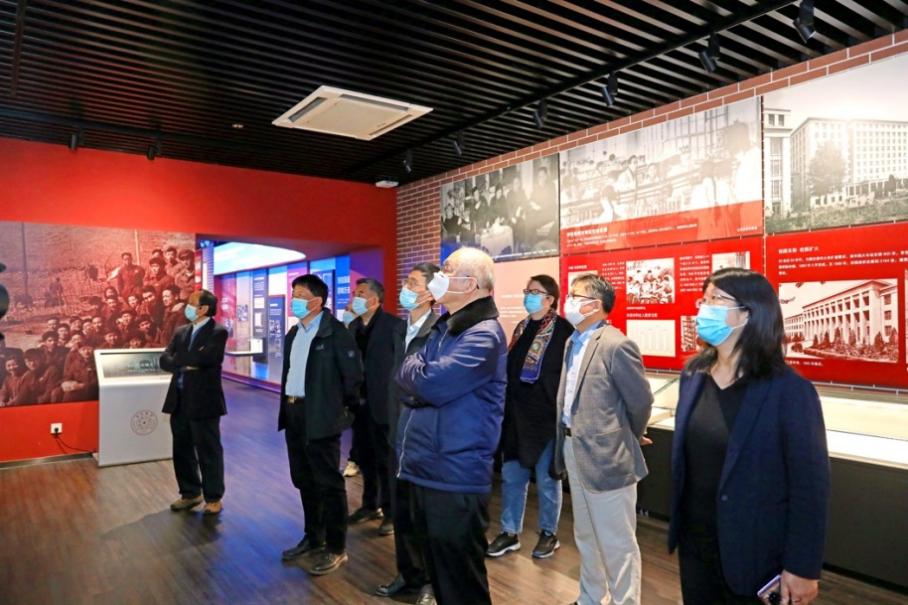 在校史馆展厅,丘成桐等首先听取了本次展览的简要介绍,然后饶有兴致地认真观看展示陈列。在一面面图文展板前,在一个个实物展柜旁,丘成桐深情回忆起陈省身先生的一些往事,仔细端详每一件展品,并就陈省身清华研究院学生成绩片中“E”和“S”的含义、留学回国前所填报告单上的英文字迹、赴美研究期间致梅贻琦校长信函的内容等,与在场人员交流。