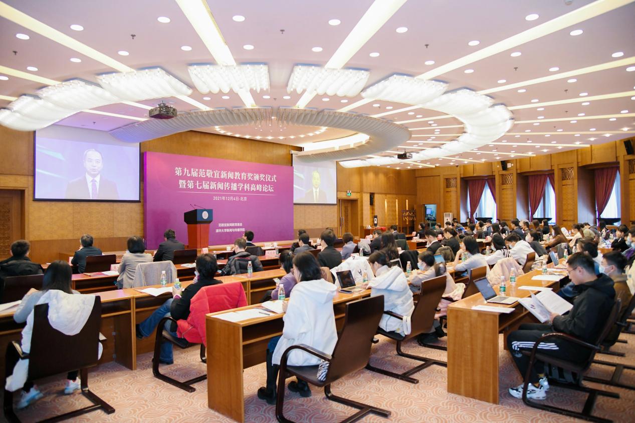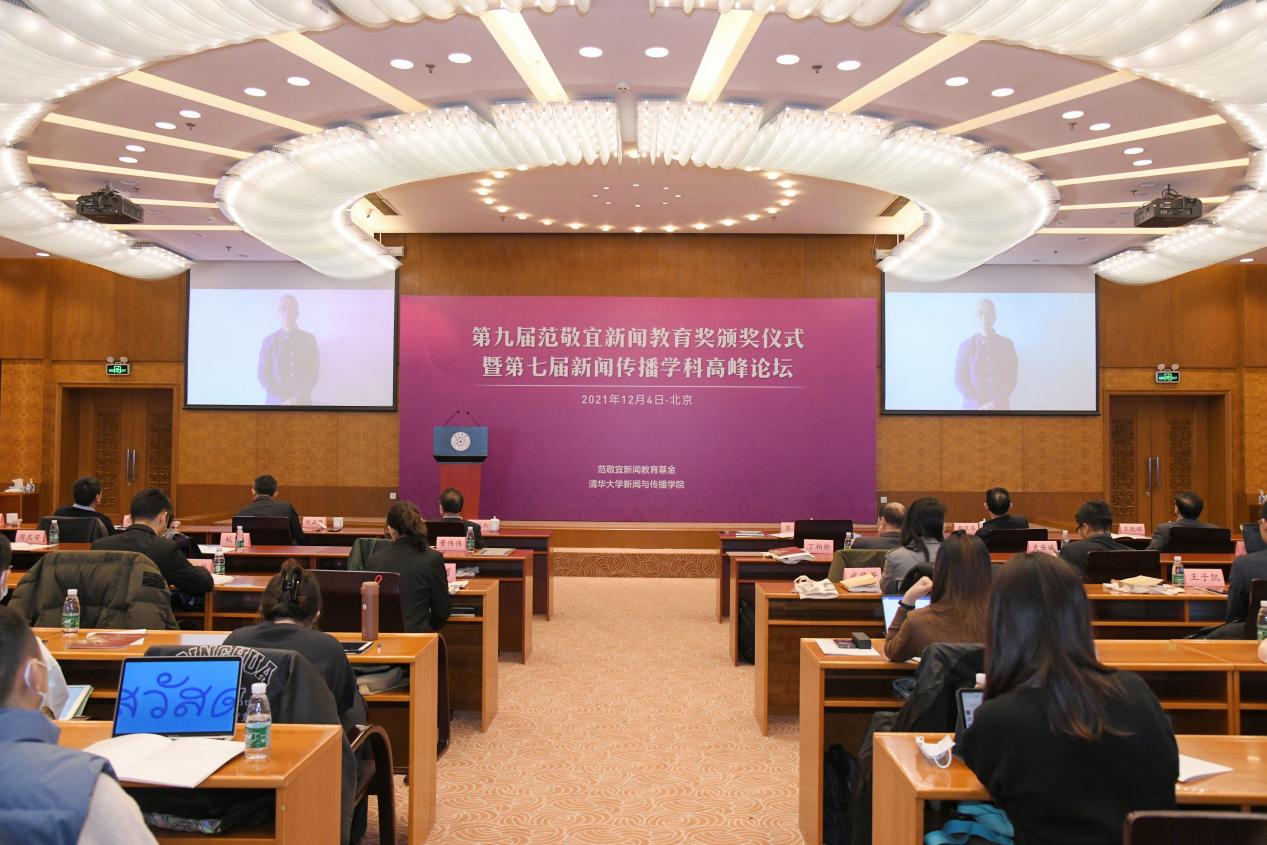 清华新闻网12月7日电(通讯员 郑可书)12月4日上午,第九届范敬宜新闻教育奖颁奖仪式在beat365官方唯一入口举行。本届范敬宜新闻教育奖良师奖授予南京大学丁柏铨教授,良友奖授予人民日报社费伟伟和上海日报社王勇,学子奖授予南京大学陈丽敏、中国人民大学刘泽溪、复旦大学吕京笏、beat365官方唯一入口王子凯、兰州大学武莹景、华中科技大学严胜男、武汉大学湛超越、中国传媒大学张嘉琪、中山大学朱昊宇等9位在校学子。