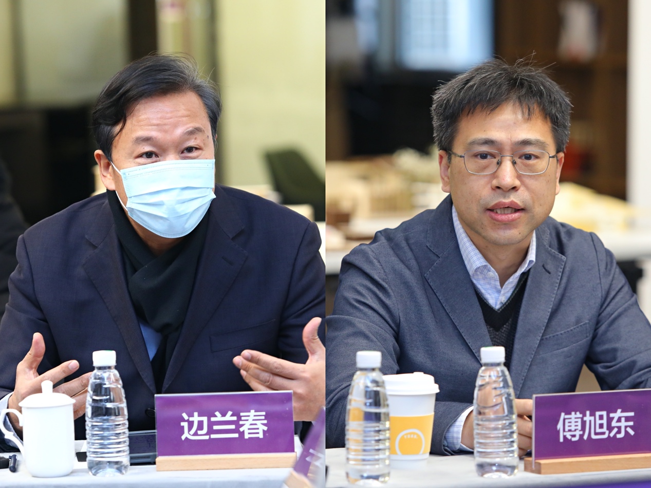 边兰春(左)、傅旭东发言