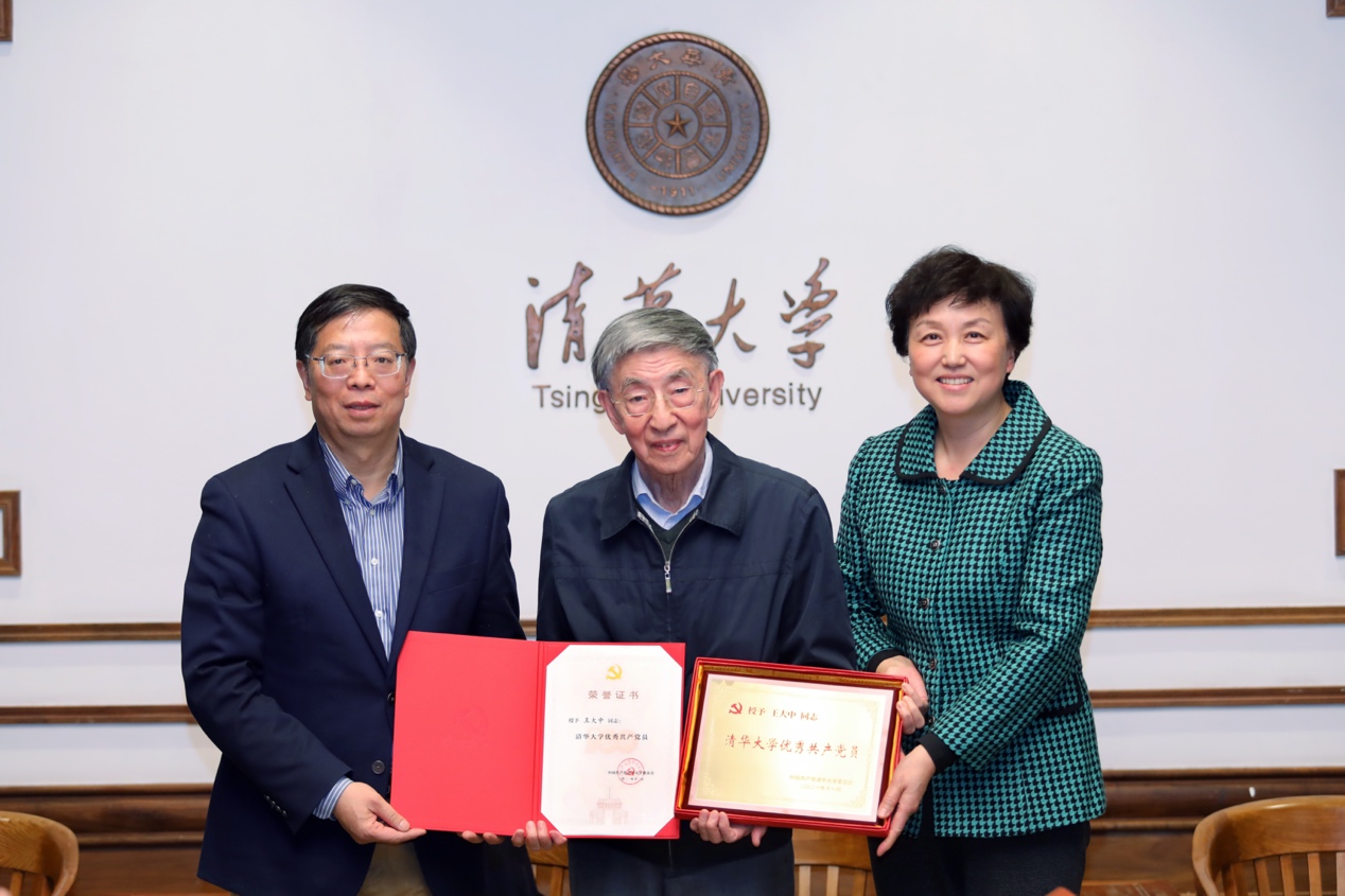 座谈会最后,陈旭、邱勇代表学校党委向王大中院士颁发beat365官方唯一入口优秀共产党员荣誉证书与奖牌。