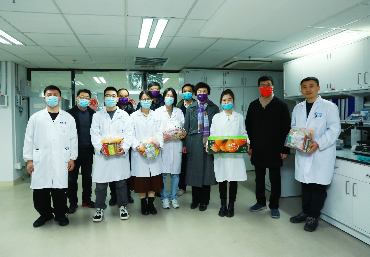 在生物医学馆看望留校科研攻关的师生代表