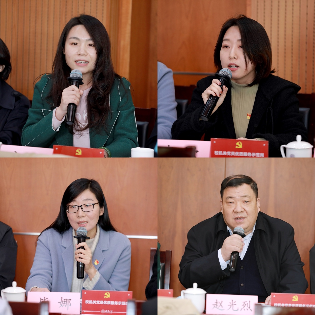 第二批党员优质服务示范岗创建代表发言(从左至右、从上至下:方锶、李款、毕娜、赵光烈)