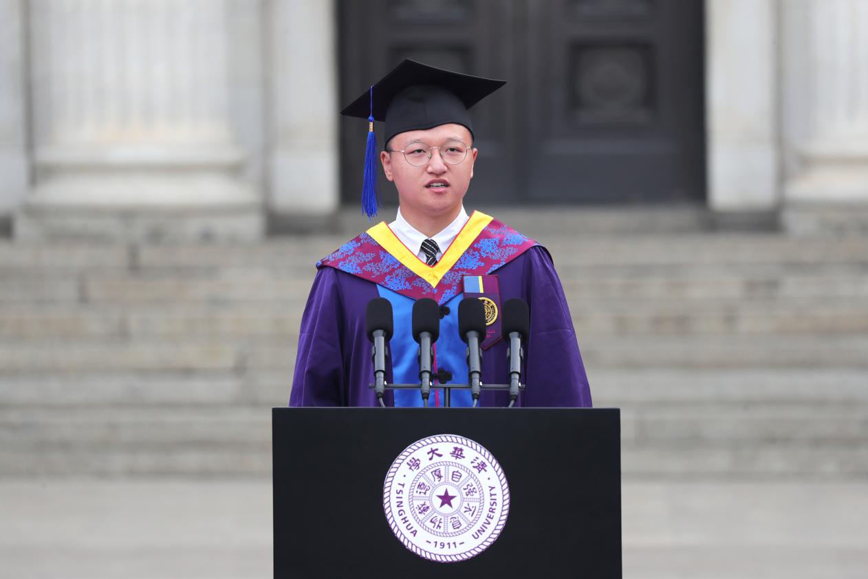 毕业生代表、航天航空学院2019级硕士生李奇钟说,如果用一个词总结在清华园的时光,答案是“担当”。这份镌刻在灵魂深处的担当,既是过往回忆的点滴积淀,也是母校赋予自己能力背后的深沉期许。即将奔赴星辰大海,愿你我不负韶华、担当常在,用热忱和智慧书写青春无悔!