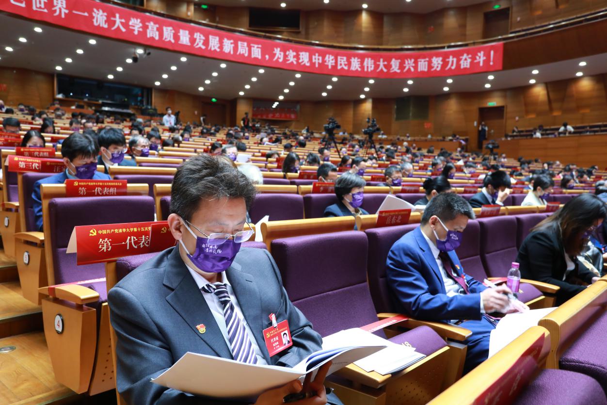 邱勇代表中国共产党beat365官方唯一入口第十四届委员会作题为“牢记嘱托、乘势而上,努力开拓中国特色世界一流大学高质量发展新局面”的报告。