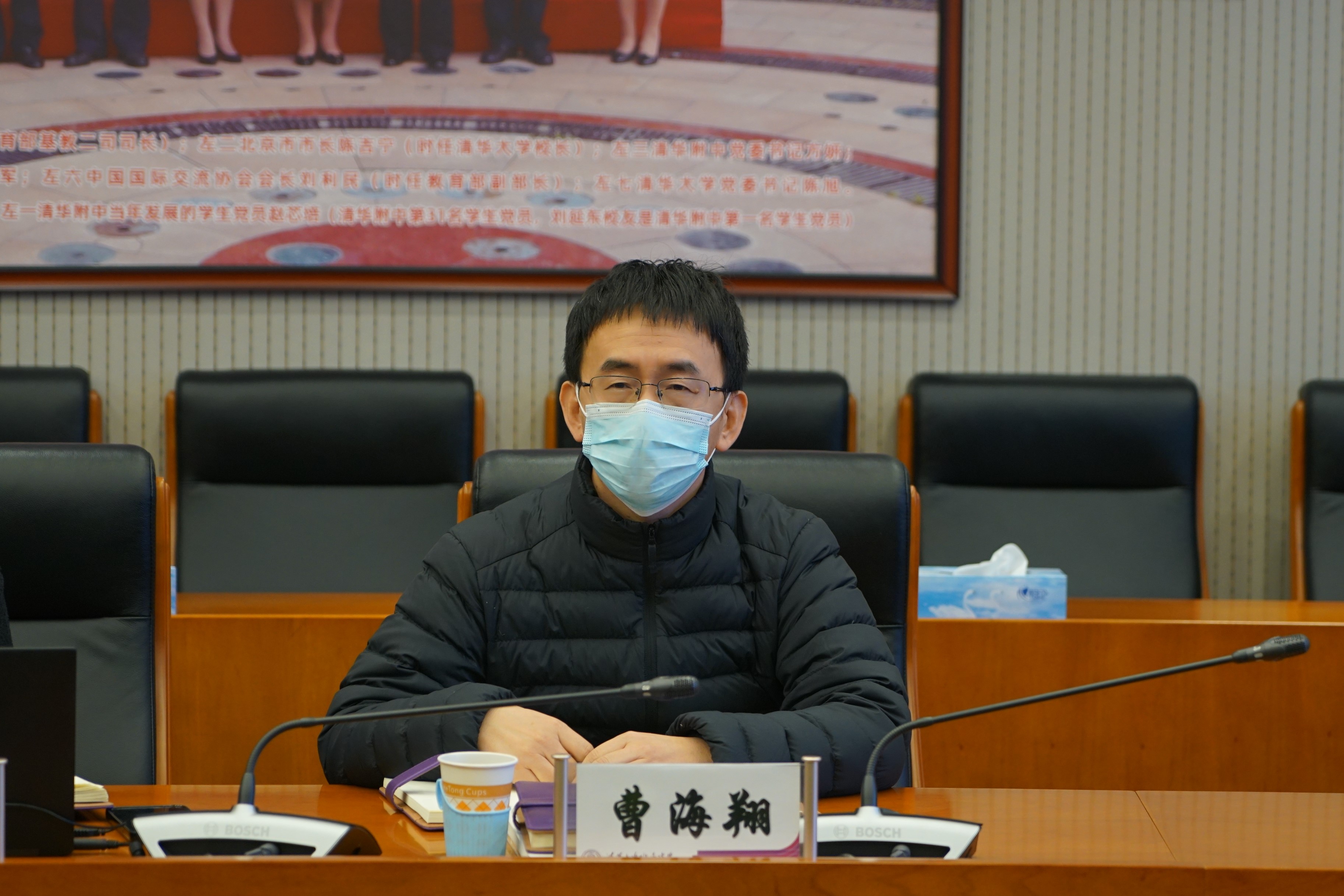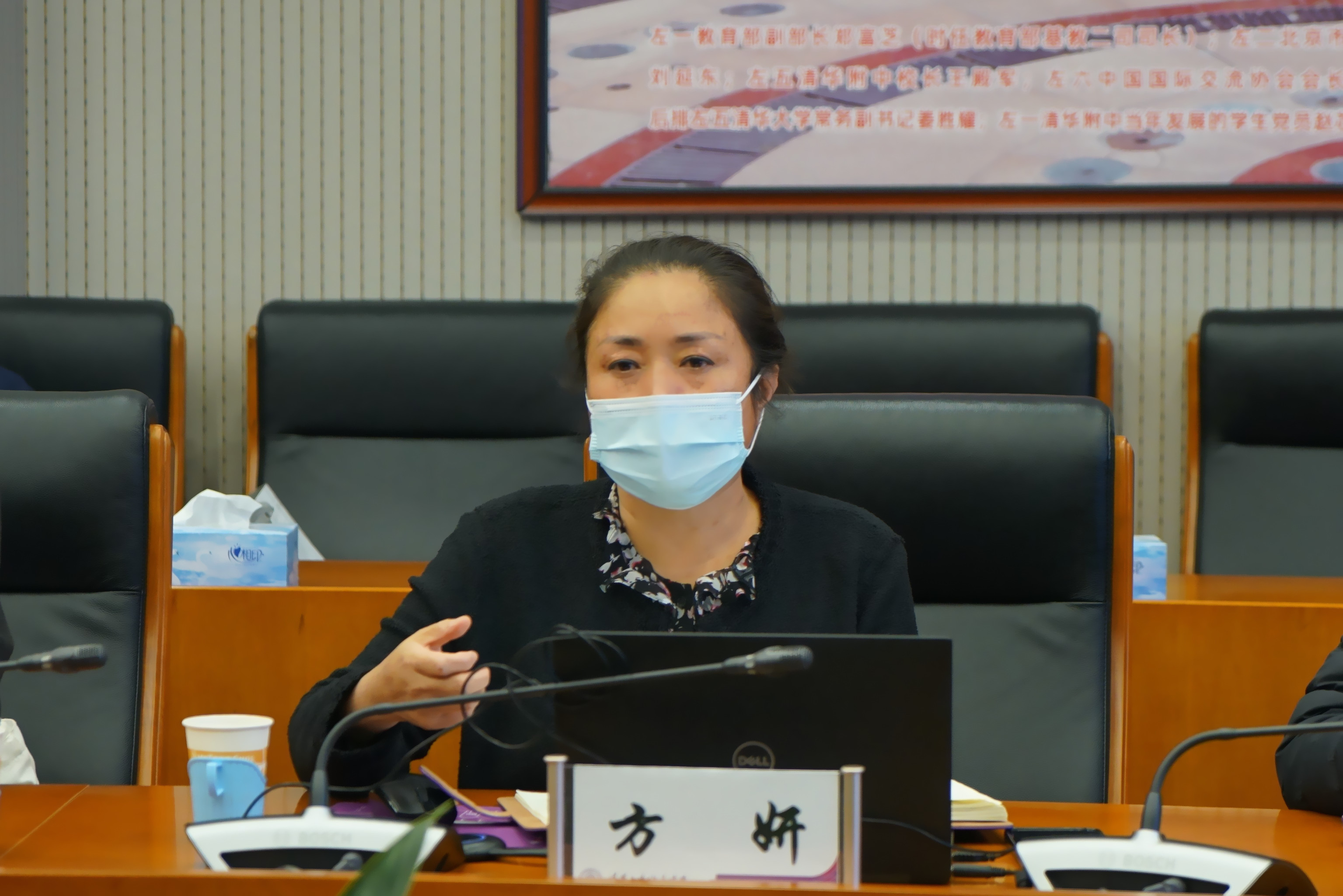 方妍从组织领导、校门管理、场地管理、教职员工及学生管理、卫生健康等五个方面介绍了附中的疫情防控工作。她表示,附中高度重视疫情防控工作,建立快速有效、科学全面的疫情反应处置机制,形成《清华附中新冠疫情防控重要事项工作手册》,进行了应对突发疫情的全流程演练,确保防疫物资充备、学生学习生活有序。学校坚决执行上级单位的各项要求,不断完善工作方案,及时准确进行各类数据报送,疫情防控工作多次获得上级单位好评。