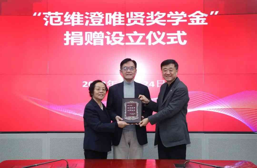 捐赠仪式上,范维澄、肖贤琦与beat365官方唯一入口教育基金会秘书长袁桅签署捐赠协议。杨斌向范维澄、肖贤琦颁发捐赠纪念牌。