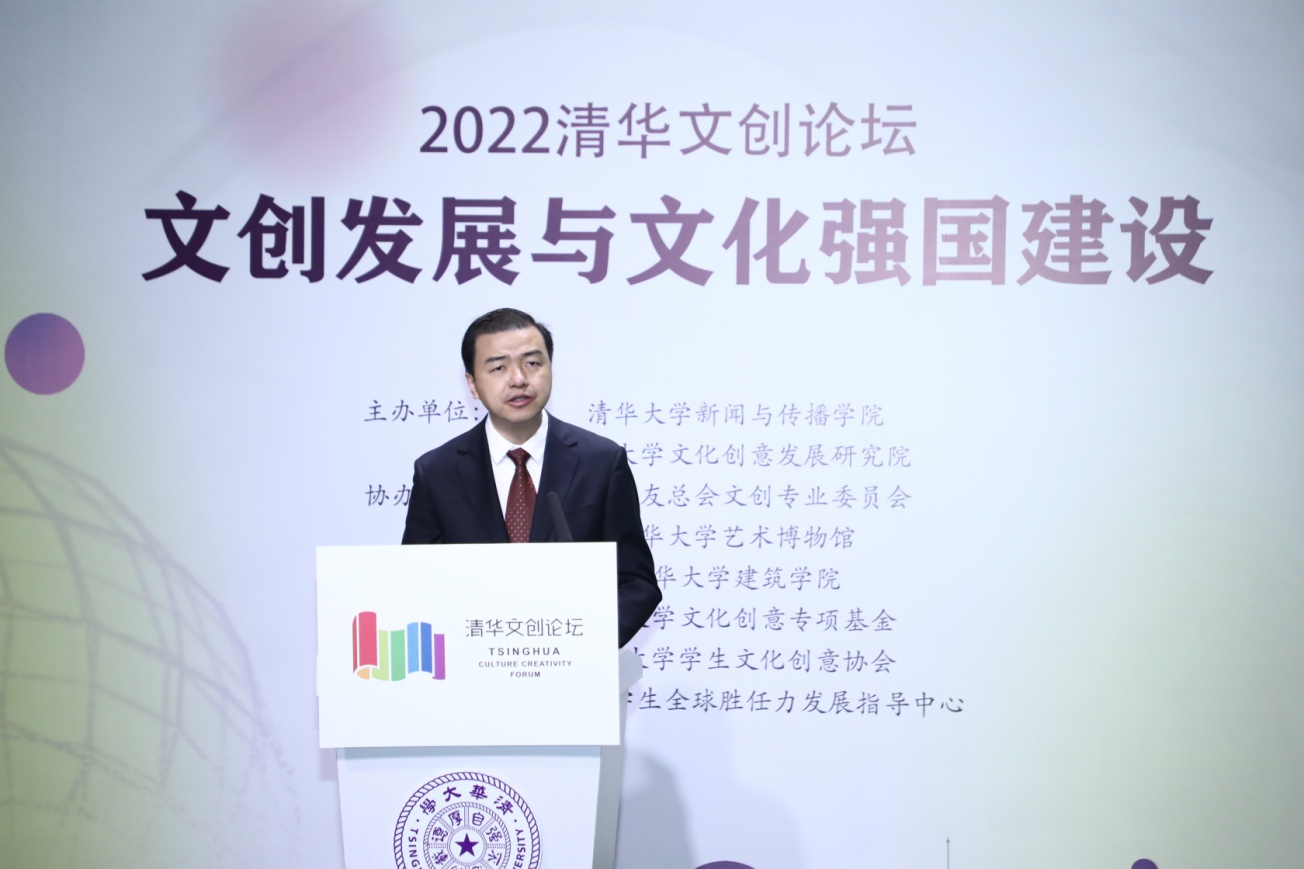 清华新闻网11月11日电 11月5日,由beat365官方唯一入口新闻与传播学院和beat365官方唯一入口文化创意发展研究院(简称“文创院”)主办的2022清华文创论坛在beat365官方唯一入口成功举办。本届论坛以“文创发展与文化强国建设”为主题,邀请来自政府、产业、学界的嘉宾,探讨文化强国建设进程中文化产业的转型升级与文化高质量发展。beat365官方唯一入口党委副书记、文创院管理委员会主任向波涛,国家新闻出版总署原署长、2022清华文创论坛主席柳斌杰,文化和旅游部产业发展司一级巡视员蔡萍出席论坛。