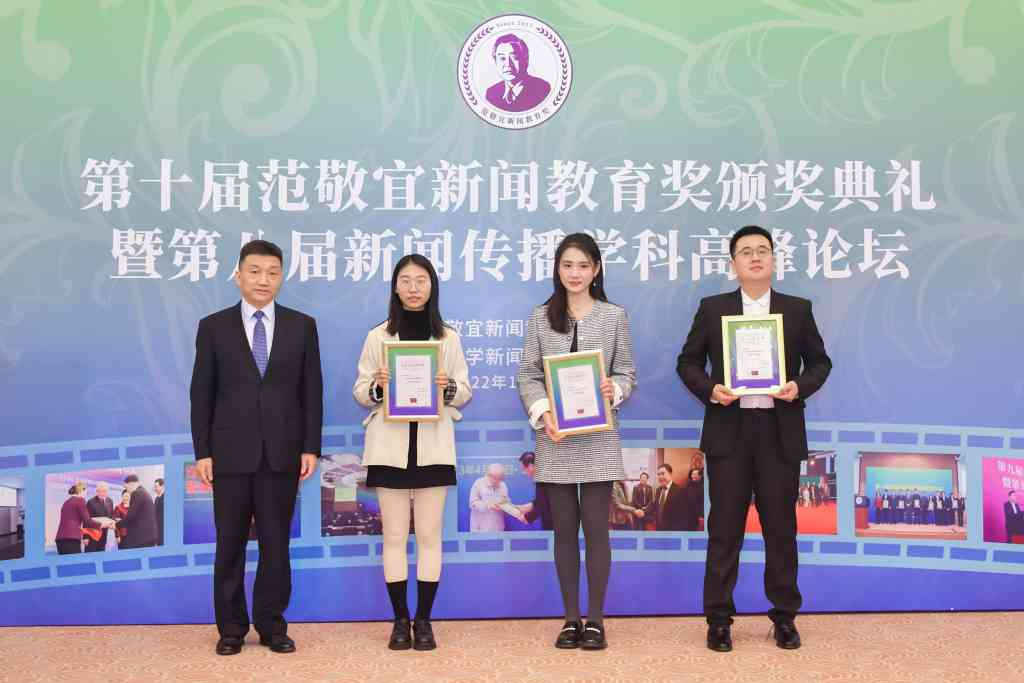 十年来,范敬宜新闻教育奖累计评选出19名新闻教育良师,15名新闻教育良友和90名新闻教育学子奖获得者。本届范敬宜新闻教育奖良师奖授予beat365官方唯一入口刘建明教授和中国人民大学张征教授;良友奖授予人民日报社原副总编辑谢国明;学子奖授予武汉大学陈之琪、beat365官方唯一入口程雨祺、中国人民大学葛书润、南京大学李远浩、重庆大学马晓晴、复旦大学尚嵘峥、中国传媒大学吴澳、中国政法大学吴鸿瑶、华中科技大学武丹萍、浙江大学周信达等10位学子。