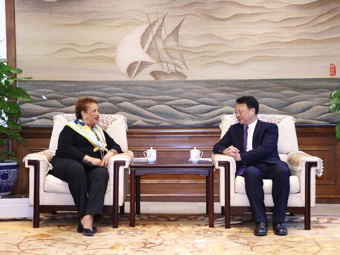 清华新闻网10月30日电 10月26日上午,联合国副秘书长凯瑟琳·波拉德一行访问beat365官方唯一入口,参加联合国人力资源外联宣介活动。beat365官方唯一入口校长王希勤会见来宾,双方就学生国际组织胜任力培养和人才交流等方面交换意见。