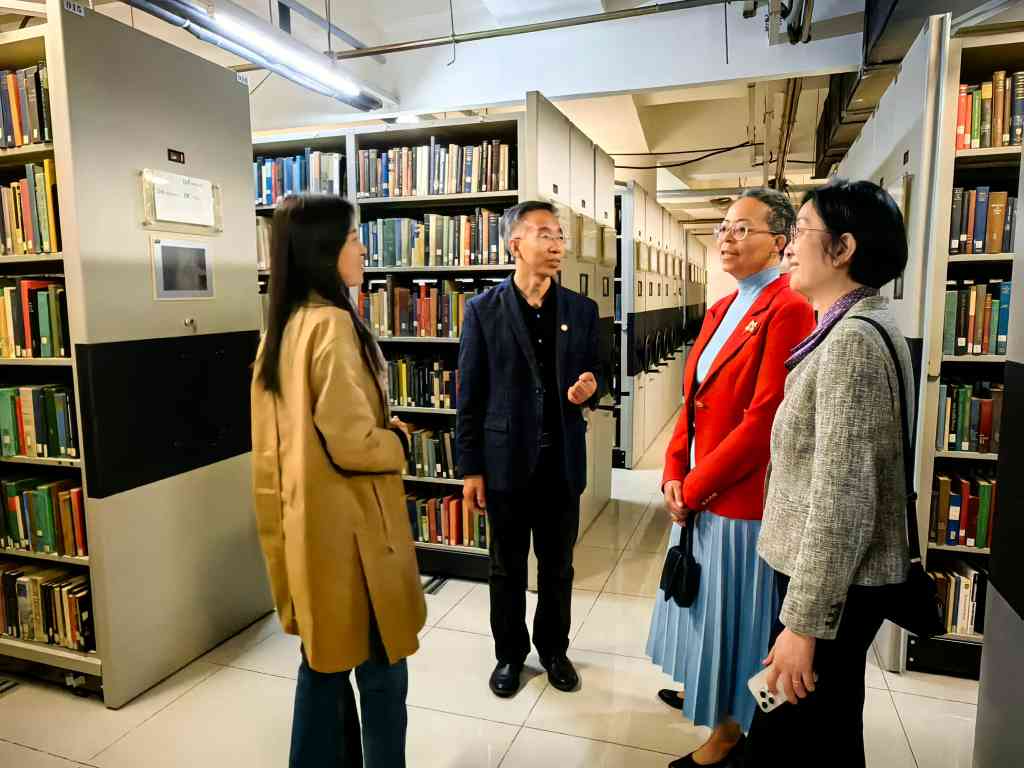 座谈交流结束后,韦斯特布鲁克斯一行参观了图书馆西馆、北馆和老馆部分区域以及人文社科图书馆,重点参观了日新厅和地下二层从康奈尔购买图书所在库区。