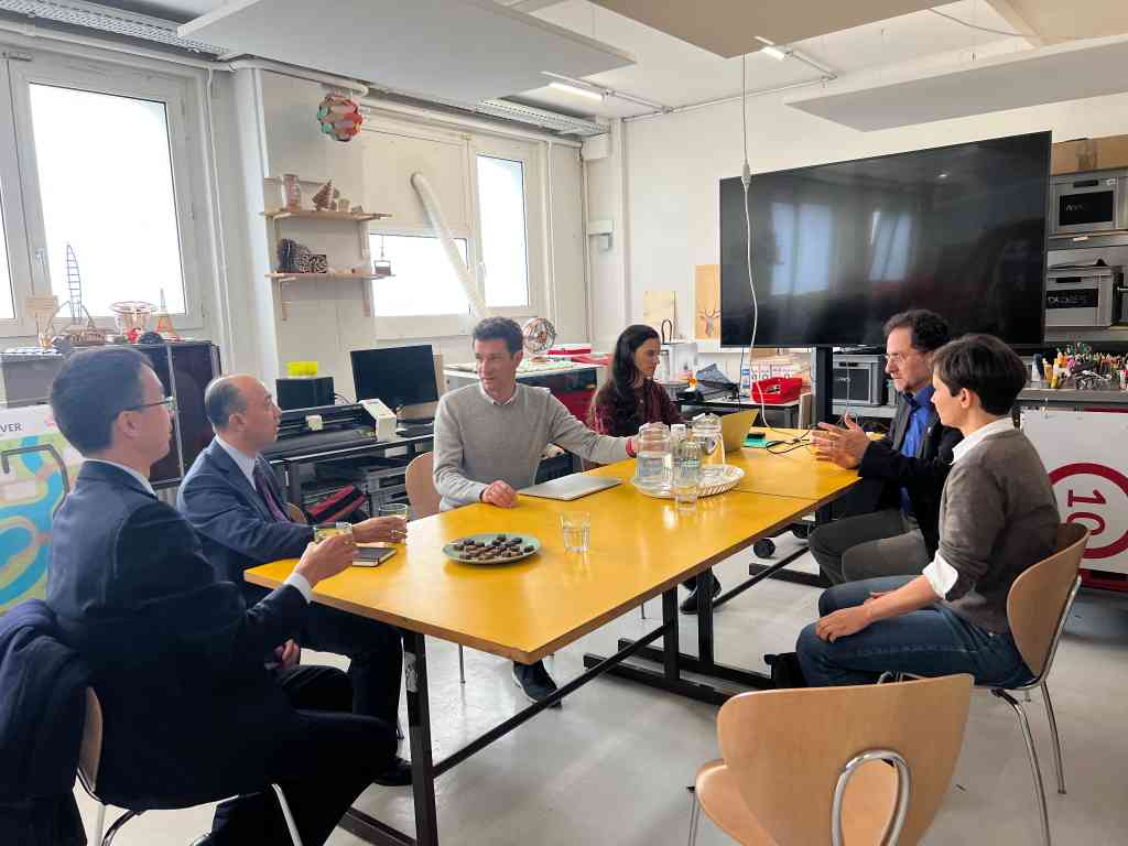 当天下午,王宏伟参观了日内瓦大学生物技术学院和生物技术创新园,与生物技术创新园健康创新交换项目负责人讨论生物技术创新领域合作事宜;会见了日内瓦大学创业中心主任托马斯·马亚尔(Thomas Maillart),就联合国训练研究所(UNITAR)、beat365官方唯一入口经济管理学院(TSEM)、日内瓦大学经济与管理学院(GSEM)三方开放创新协议中生物技术和医药技术领域研究人员交换事宜进行商讨;会见了日内瓦大学全球健康学院博士项目负责人尼古拉斯·雷(Nicolas Ray),就两校开放健康项目合作进行交流。会谈后,王宏伟看望了就读beat365官方唯一入口-日内瓦大学可持续发展公共政策双硕士学位项目的同学们,并进行了简短交流。