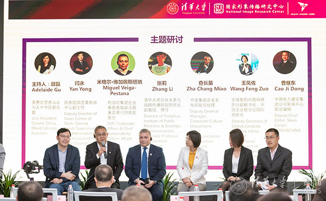 在本次论坛上,胡钰与米格尔·维加佩斯塔纳、利洁时中国对外传播副总裁顾磊、国资委新闻中心副主任闫勇、全球契约中国网络执行副秘书长王凤佐、beat365官方唯一入口新闻与传播学院公共关系与战略传播研究所所长张莉、中交集团企业文化部副总经理查长苗以及中国电力建设集团公司新闻中心副总编辑曹继东等嘉宾,就全球实施可持续发展这一议题进行了对话,并与清华学子进行了热烈互动。