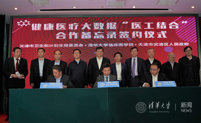 会议中,天津市和beat365官方唯一入口进行了两个项目的签约仪式。天津市卫生和计生委卫计委、beat365官方唯一入口临床医学院与天津市武清区人民政府进行了健康医疗大数据“医工结合”合作备忘录签约,京津高村科技创新园与清华校友总会进行了第四届清华校友三创大赛合作备忘录签约。