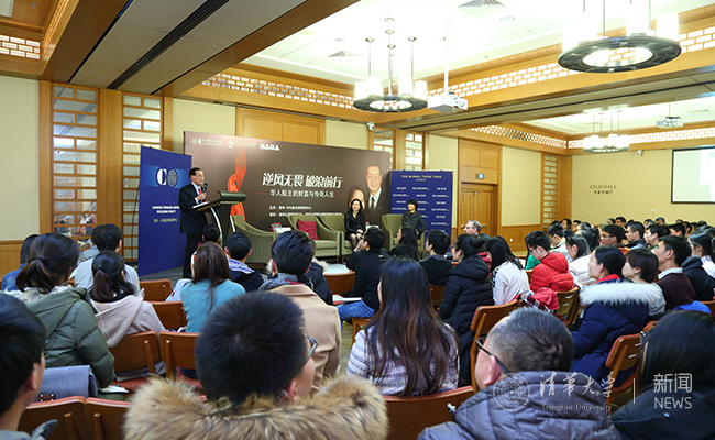 会后,赵锡成先生和赵安吉女士出席“逆风无畏,破浪前行——华人船王的财富与人生传奇”分享会,为到场的清华师生分享自己的奋斗故事和人生经验。清华社科学院国际关系学系副教授唐晓阳、清华-卡内基中心主任韩磊(Paul Haenle)致辞。