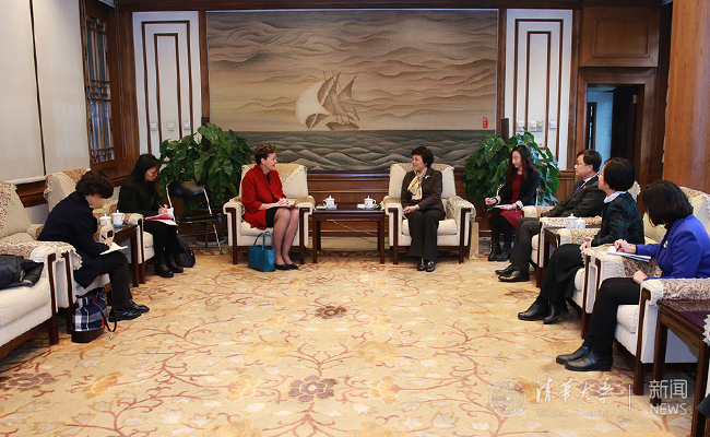 艾琳女士说,在亲身参与英中文化交流的过程中,清华为建设世界一流大学做出的巨大努力和取得的显著进步给她留下了深刻印象。中英高等教育人文联盟的成立是中英文化交流取得的重要成果,她期待联盟今年在牛津大学举行的第二次会议,并继续作为中英人文对话机制的配套活动。艾琳女士表示,英国文化协会将大力支持两国青年人之间开展更多的互动活动,并将协助推动我校与英国高校的联系与合作。她还肯定了文化交流活动在提升国家软实力、鼓励当代女性自尊自立自强精神方面所起的积极作用。