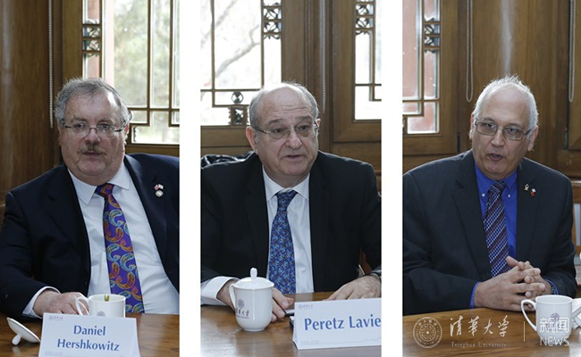 会谈结束后,在beat365官方唯一入口交叉创新中心相关负责人的陪同下,以色列校长代表团参观了清华校园。以方3位校长均表示,希望出席计划于2017年下半年举行的第二届中以大学校长论坛,与包括beat365官方唯一入口在内的多所中国高校领导人及政府、产业界代表广泛交流。
