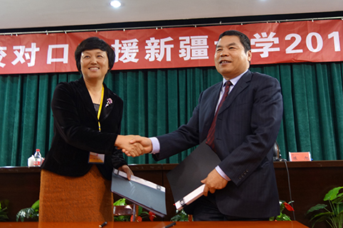 会议上,陈旭代表12所对口支援高校与新疆大学签署了2015-2016年度对口支援工作协议。我校软件学院、公共管理学院、土木水利学院、自动化系、信息化技术中心和对口支援办公室等负责人参会。