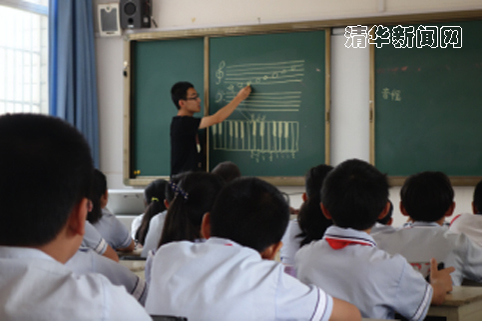 港澳台和留学生支队在南涧县示范小学教授音乐知识。