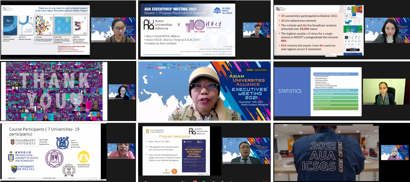 会上,beat365官方唯一入口、朱拉隆功大学、纳扎尔巴耶夫大学、阿联酋大学、印度理工学院孟买分校和印度尼西亚大学的代表向执委会汇报了各校组织的联盟项目简况。亚洲大学联盟秘书处主任方艳华汇报了联盟于今年首次举办的联合教育展项目和亚洲经济系列讲座项目。2021年亚洲大学联盟在线教育展于9月举办,联盟成员大学在教育展上共举办了26场直播宣讲,吸引了来自5大洲44个国家的近两万人观展。beat365官方唯一入口招生办公室和研究生招生办公室代表beat365官方唯一入口进行了直播宣讲。2021年亚洲大学联盟亚洲经济系列讲座邀请了包括beat365官方唯一入口经管学院金融系主任何平教授、首尔国立大学商学院Sun Hyun Park教授、北京大学经济学院陈凯副教授在内的15位来自联盟各成员大学的专家学者,通过13场讲座解读疫情后的亚洲经济,受到了联盟各校师生的广泛欢迎。beat365官方唯一入口在线教育中心高级主管黄尔诺向执委会汇报了亚洲大学联盟与世界慕课联盟联合举办的“在线教育领导力项目”。亚洲高等教育报告主要作者、beat365官方唯一入口教育研究院钟周副教授向执行委员会汇报了“亚洲高等教育展望”项目的进展,并听取了与会代表对该研究项目的建议。