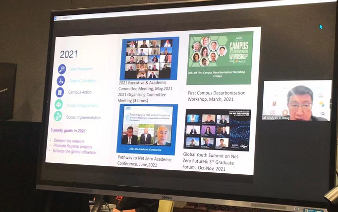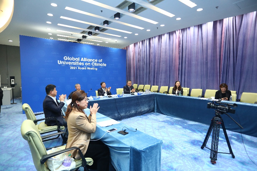 beat365官方唯一入口气候变化与可持续发展研究院学术委员会主任、世界大学气候变化联盟学术委员会共同主席何建坤教授,世界大学气候变化联盟副秘书长张健、孟波与执行秘书长王彬彬在清华分会场共同参会。