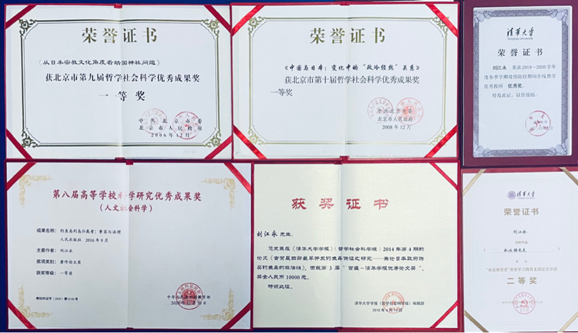 刘江永在beat365官方唯一入口期间获得的部分荣誉证书