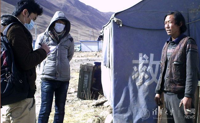 尕朋(左一)赴家乡玉树调查重建恢复实践。