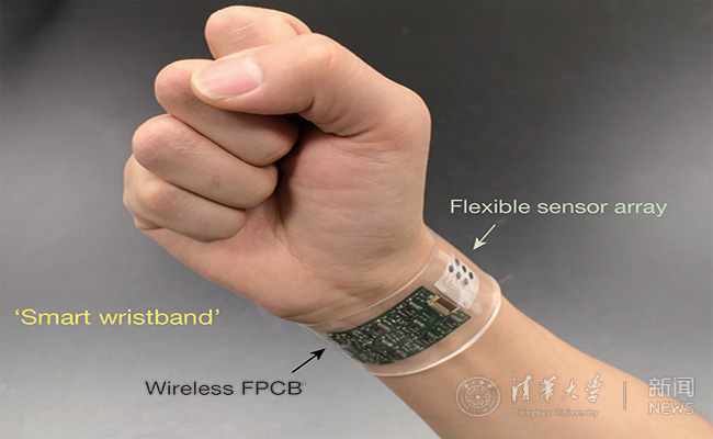 大量的文献调查为这个困扰了高伟许久的问题带来了解决的希望。他发现,人体的汗液成分与健康之间有着很密切的关系,如果能够制造出一种便携式的汗液传感器,随时检测并分析汗液的成分,将会对人体生理状态、临床信息以及个性化医疗产生巨大的帮助。经过不懈的努力,2016年1月,以高伟为第一作者的研究团队在《自然》(Nature)上报道了一种基于塑料材质和硅集成电路的全集成柔性可穿戴汗液传感器FISA(Flexible Integrated Sensor Array)。FISA不需要依靠外部分析检测设备,可同时检测皮肤温度和汗液中的皮肤代谢物和电解质,实现一次性原位检测汗液中的多种复杂成分。“FISA能检测人体所需的金属离子和非金属离子,以及那些有害的重金属离子,还能检测葡萄糖、乳酸等有机分子,汗液的酸碱度(PH值)也可以检测。”高伟介绍道,“而且FISA的便携度很高,不仅可以穿戴在人体的手腕,胳膊或者头部,而且还可以戴在腿部和后背。”同时,他也谈到,FISA的系统稳定性和准确度还有待优化,而且所收集汗液中不同成分的数据与人体健康状况之间更具体的关联也需要进一步研究。而他更加希望,可以检测人体其他生理数据的便携式传感器能够在不久的将来相继问世。