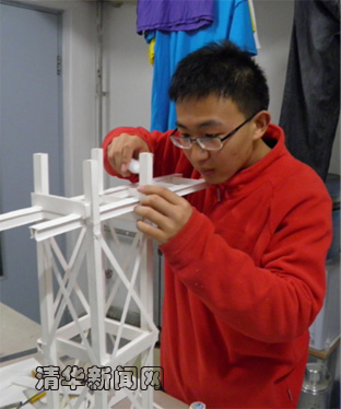 图为孙启力参加结构设计大赛。
