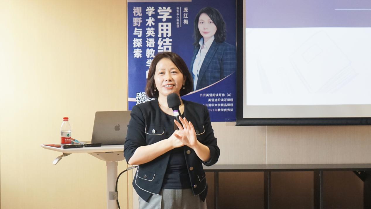清华新闻网2月27日电 2月23日下午,第32期“教与学”教师分享会如期举行。语言教学中心副教授庞红梅以“学用结合——学术英语教学的视野与探索”为题,分享了英语阅读与写作(简称“英语读写”)课程中的教学旨趣与实践重点难点,并就不同专业的学术英语写作问题与在场教师进行互动交流。来自全校各院系的20余位教师参加活动。