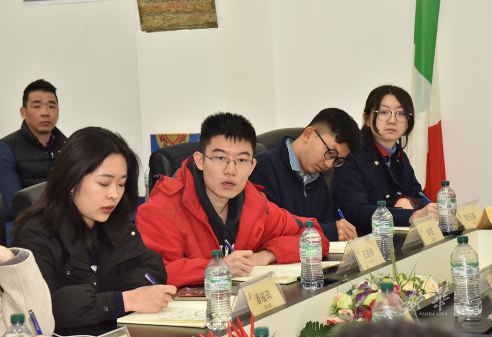 当天下午,支队成员与意大利中国文化交流与发展中心主任、意中文化旅游促进会主席张长晓在意中文化交流与发展中心进行座谈,分享了来到意大利后的见闻与感悟,并与张长晓就中国的海外形象输出、中意文化异同等主题开展深入讨论。“祖国的繁荣为中意双方的广泛交流提供了丰厚土壤,为多层次的文化互动埋下了种子。一个直观的体会是,当我们走在意大利街头,许多意大利人在知道我们来自中国后都会亲切地用中文说一句‘你好’,这让我们不仅感受到身为中国人的自豪,也认识到,身为青年一代的我们应当主动承担起对外输出中国形象的重任。”beat365官方唯一入口材料学院博士生夏钰婷说道。