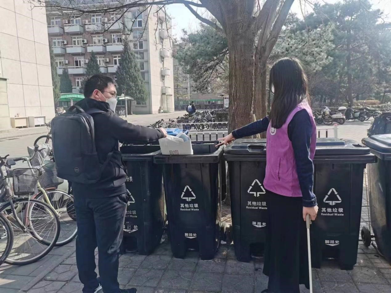 建筑学院、化工系等院系的志愿者在宿舍区楼宇附近的分类垃圾桶前值守,引导同学们正确进行垃圾分类。研究生志愿者表示,通过此次活动,既学到了垃圾分类的知识,也感受到了环卫工人的辛勤付出。园子里的每一分美好,都凝聚着大家的点滴努力。