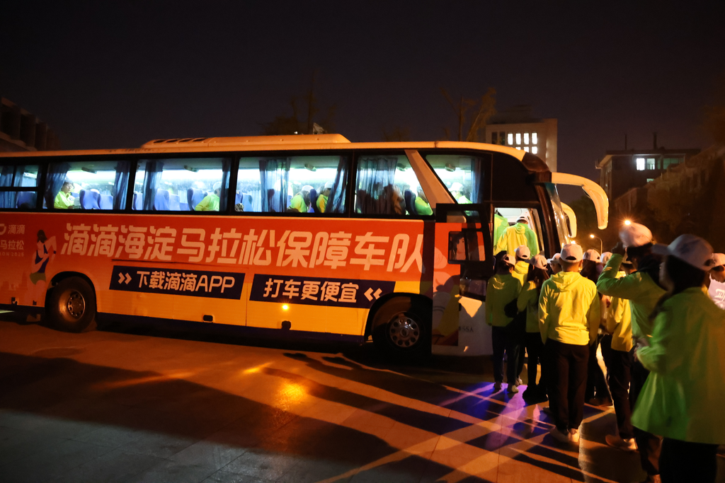 凌晨4点,紫荆志愿者前往赛事现场
