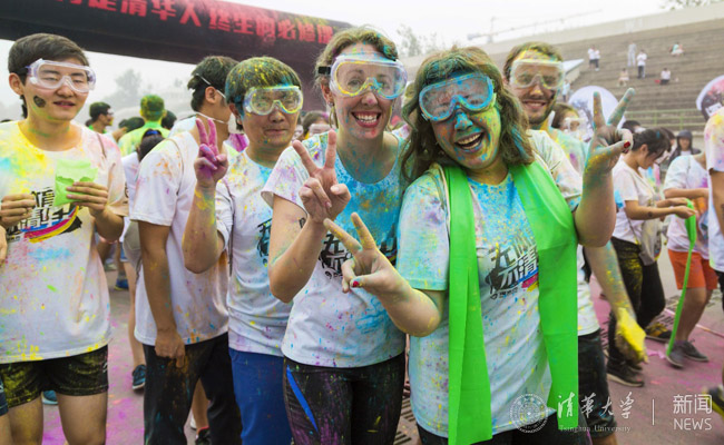 外国留学生在彩跑现场合影。学生通讯员 向 勇 摄